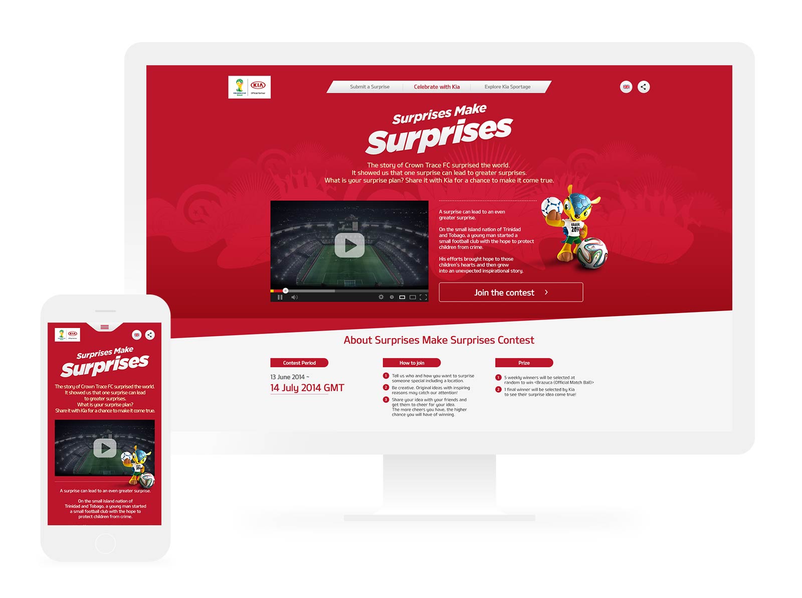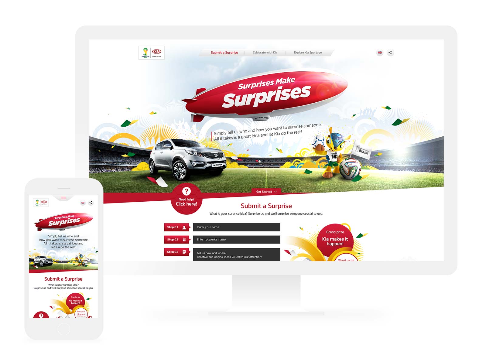 As an official partner of the FIFA World Cup, Kia Motors launched a digital campaign to celebrate the event. It was kicked off with an online contest where participants entered creative ideas to surprise anyone they wanted in the context of the event and shared them through social media.